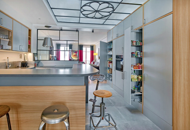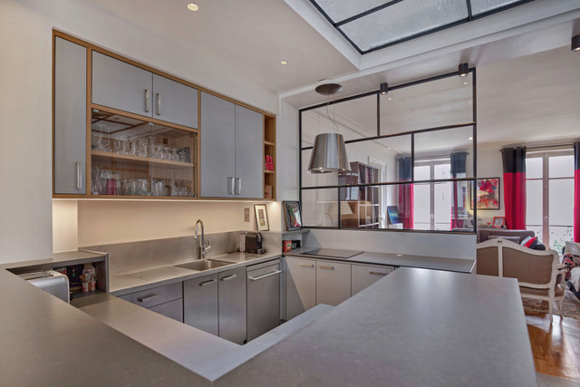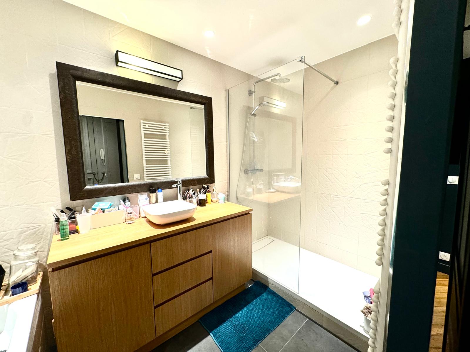 • Pièces : double séjour de 70m2 avec sa cuisine ouverte aménagée et équipée sa verrière sur le dessus amenant un puit de lumière supplémentaire