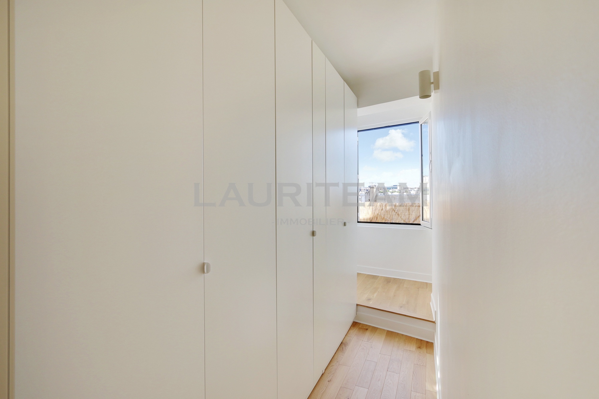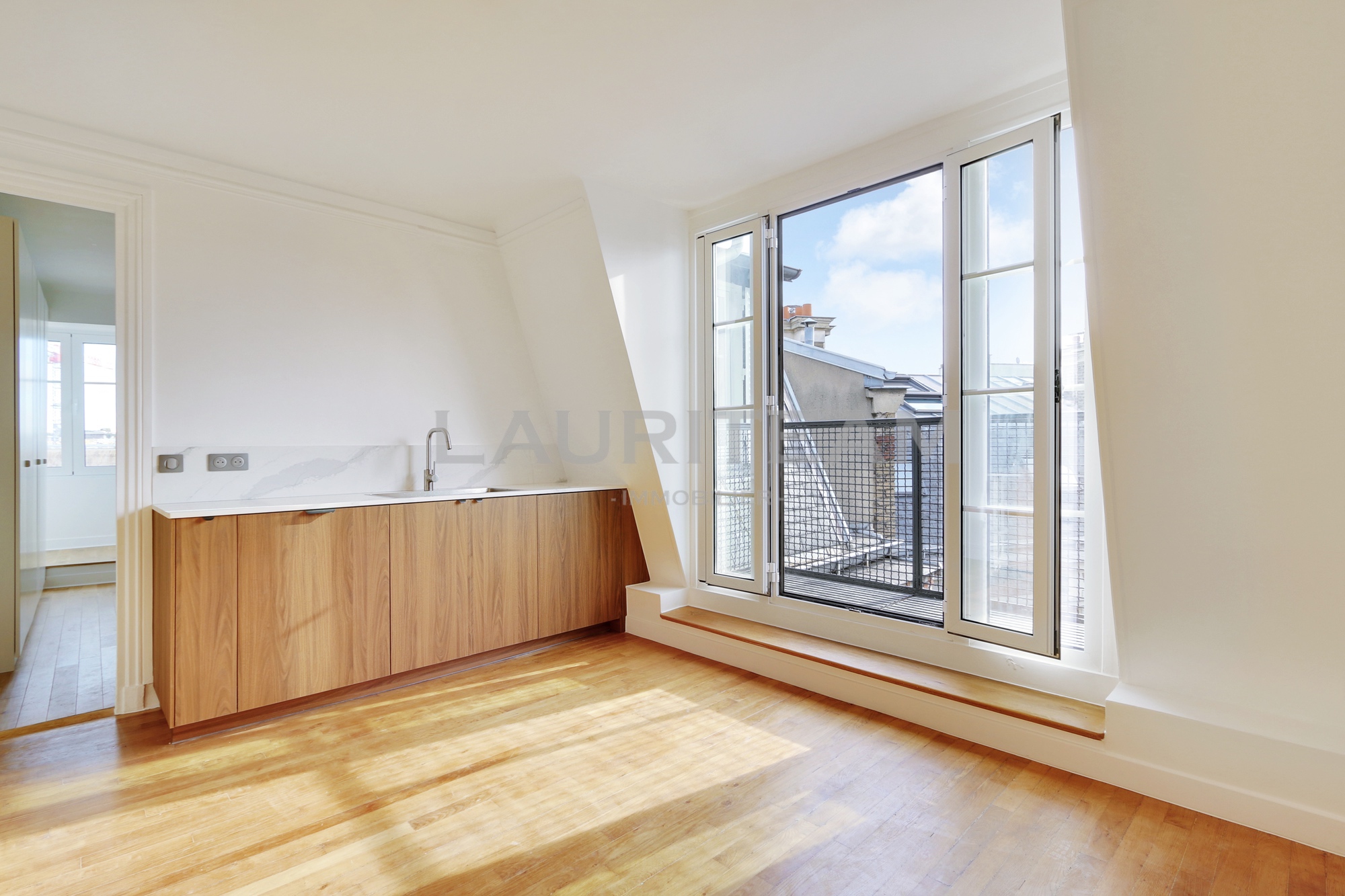 Situé au dernier étage avec ascenseur et gardien, il bénéficie d’une grande hauteur sous plafond et d’une orientation Sud-Est qui lui apporte une luminosité exceptionnelle tout au long de la journée.