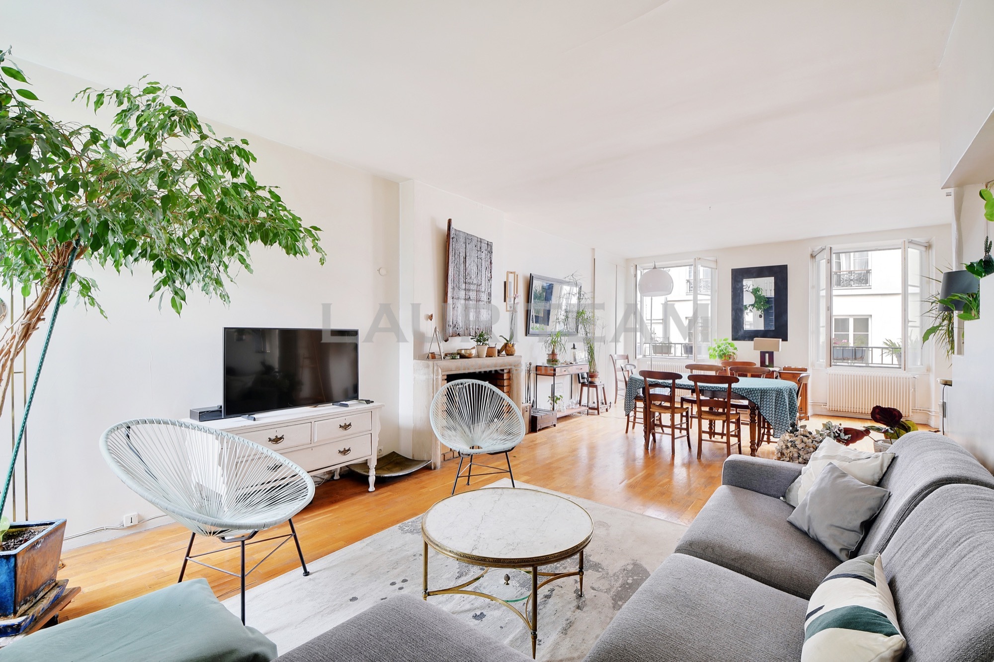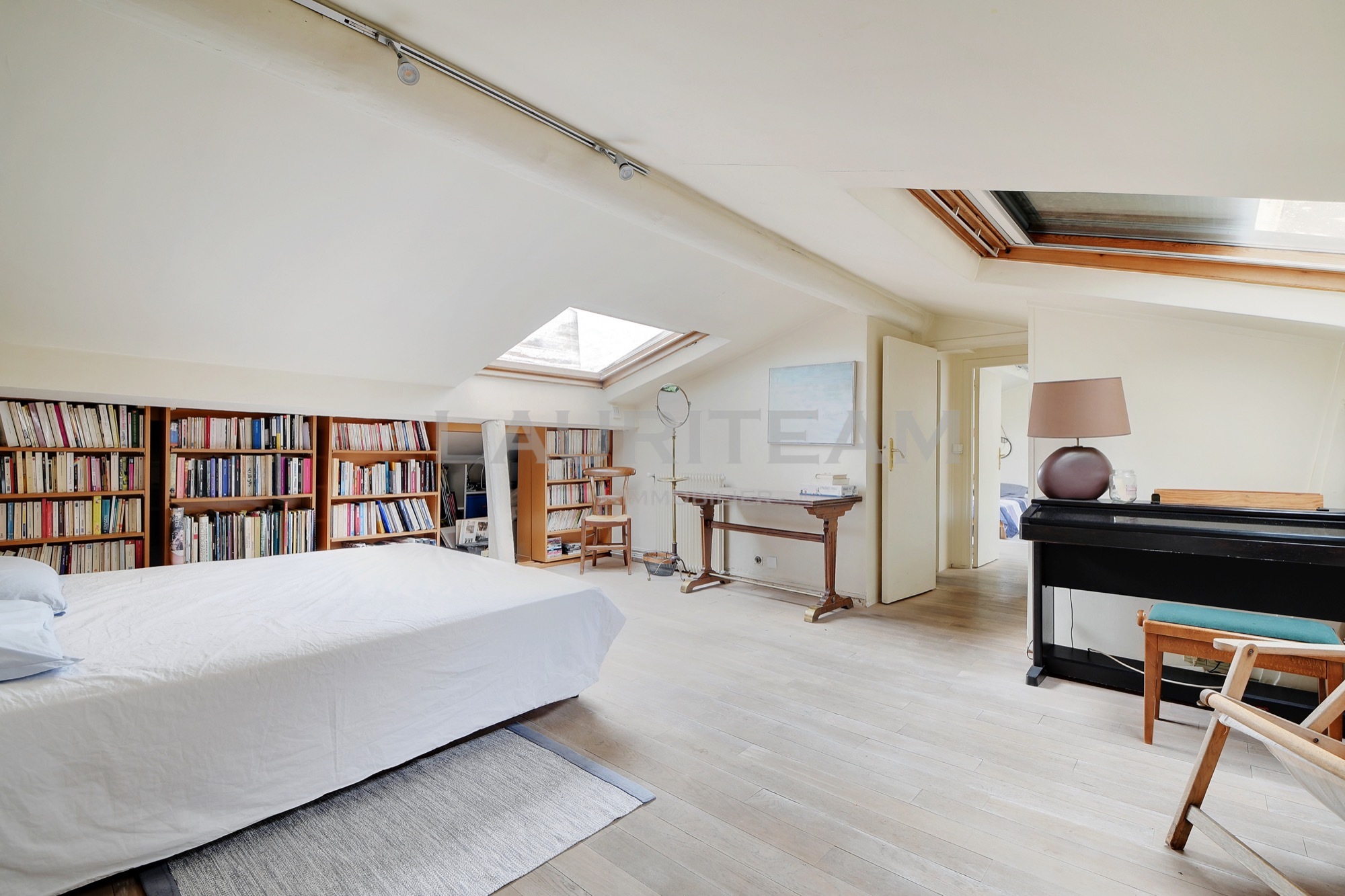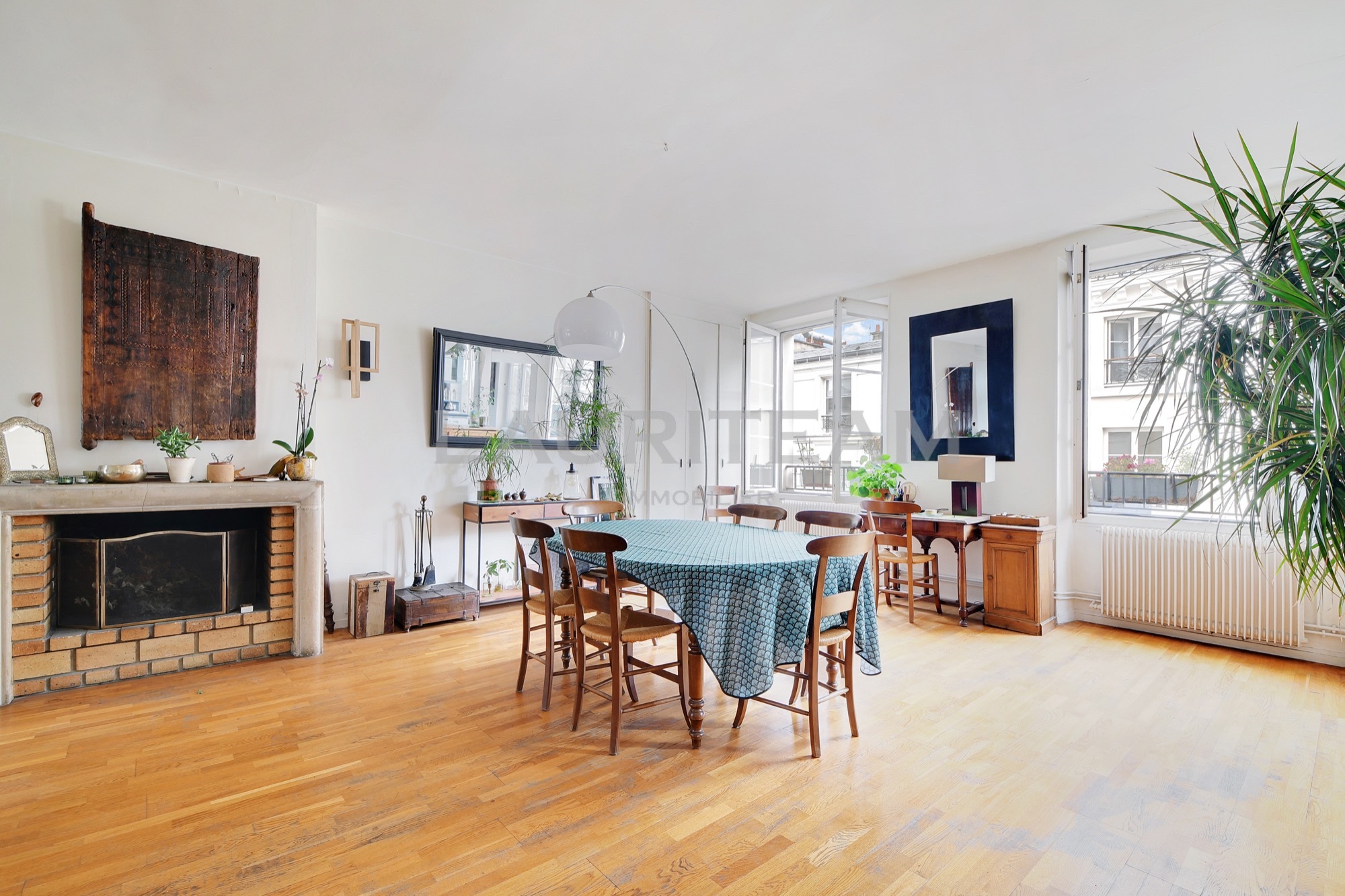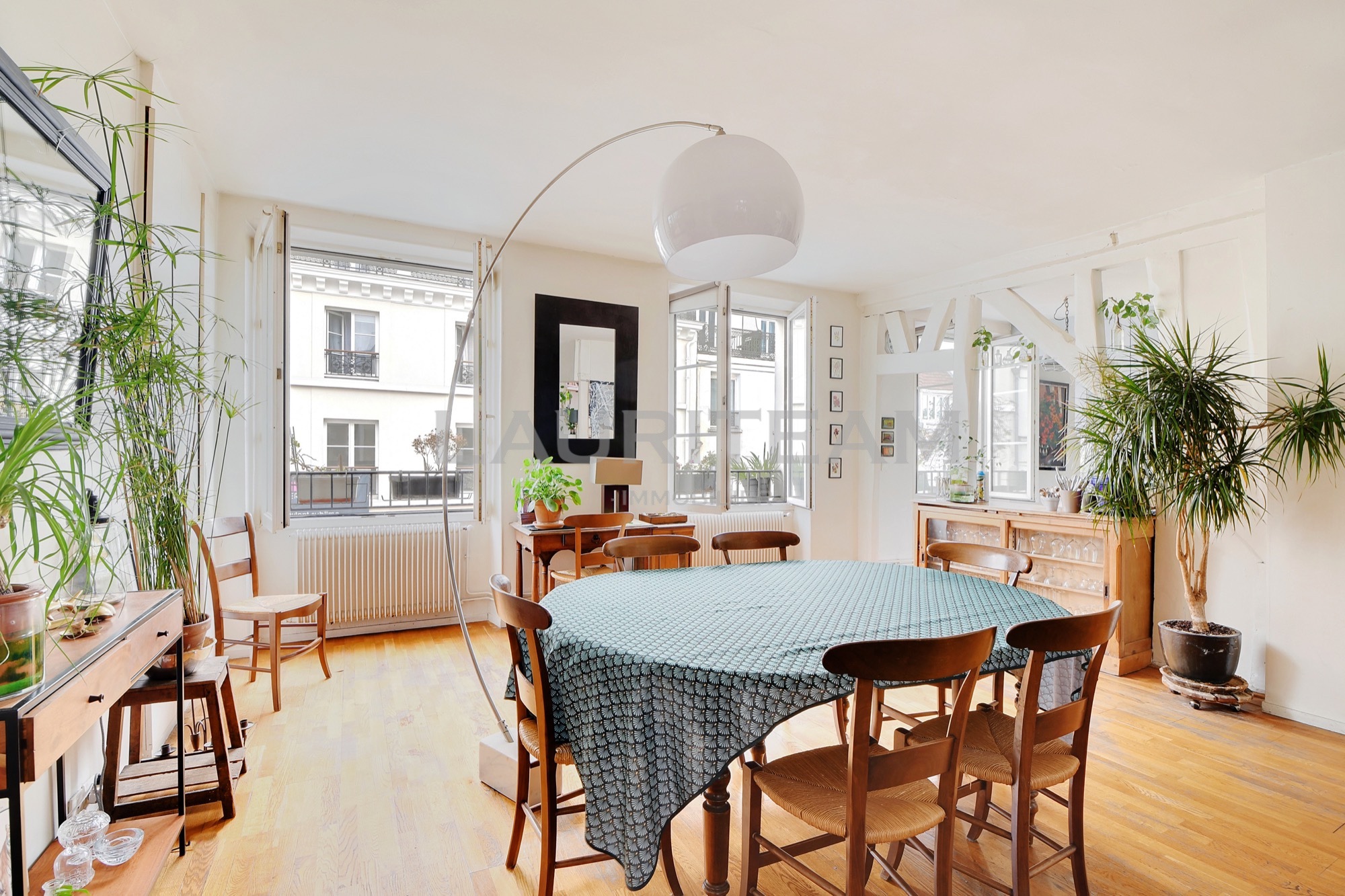 Au troisième étage d’un immeuble ancien, seul sur le palier, découvrez ce duplex traversant aux volumes généreux.